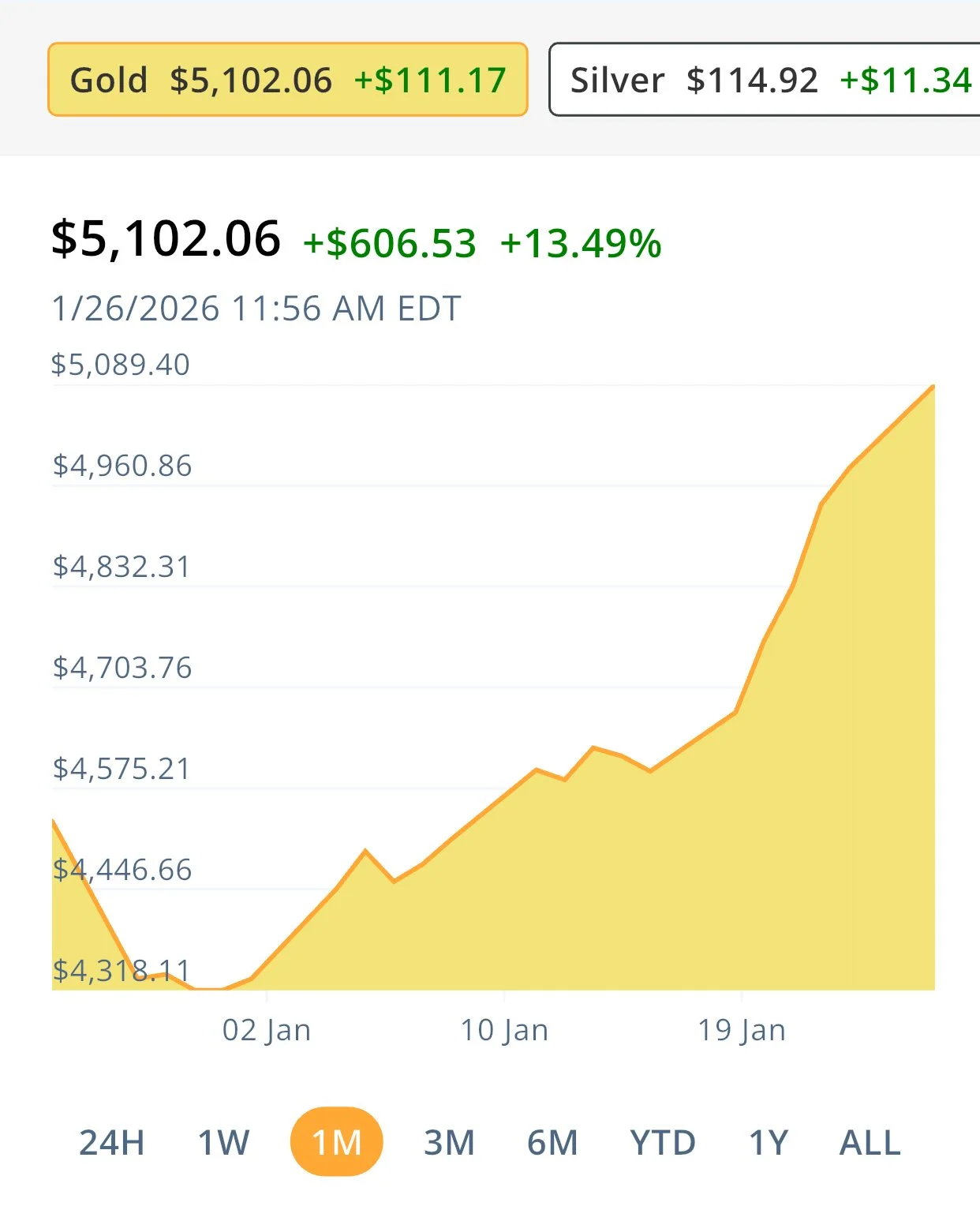 *Graph from JM Bullion showing a 1 month-to-date snapshot of metal market value.